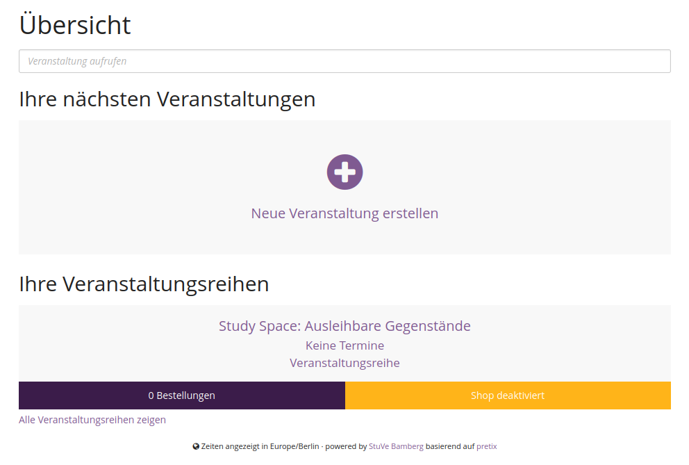 - andernfalls auf der Startseite "Neue Veranstaltung erstellen" auswählen: